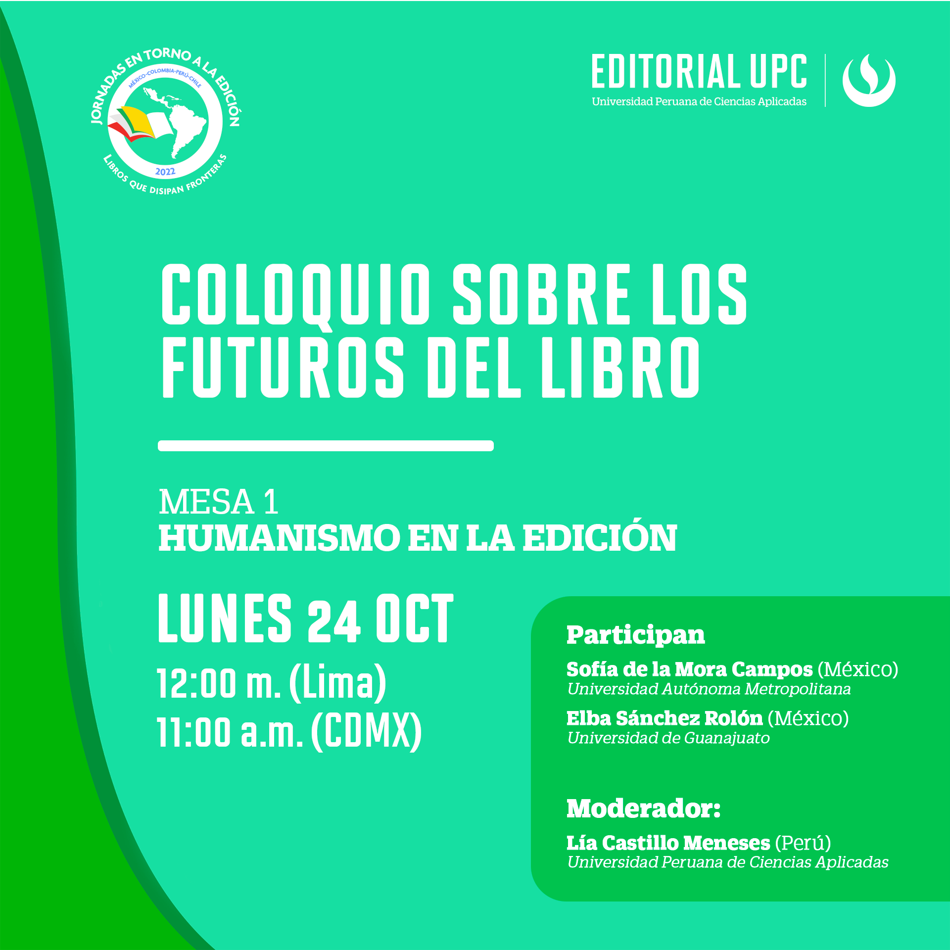 | Lunes 24 oct | 11:00 a. m. | Mesa: «Humanismo en la edición» |